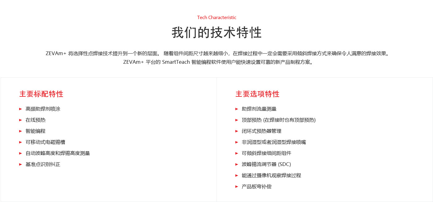 百年焊接技術(shù)成就被經(jīng)過(guò)驗(yàn)證的性能。 · 高頻助焊劑噴涂技術(shù)提供最精準(zhǔn)的制程,應(yīng)對(duì)最高的質(zhì)量挑戰(zhàn) · 多達(dá)三組全尺寸預(yù)熱單元,包含焊接過(guò)程中的閉環(huán)式預(yù)熱模式 · 已獲專利的傾斜焊接技術(shù)及 SDC 功能,能應(yīng)對(duì)任何焊接問(wèn)題,包括越來(lái)越細(xì)小的 間距帶來(lái)的焊接挑戰(zhàn) · 智能編程軟件能快速設(shè)置可靠的制程方案 · 制程的控制性,可最大程度保證每天如一的性能
